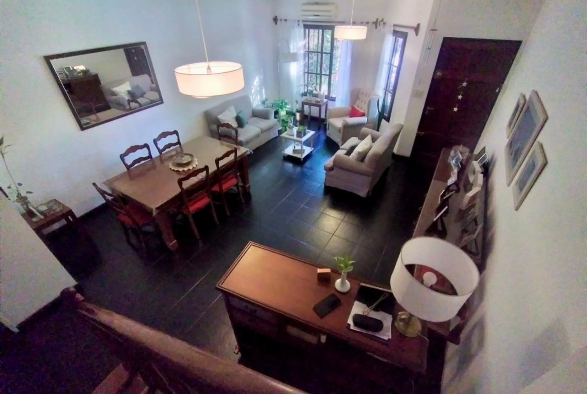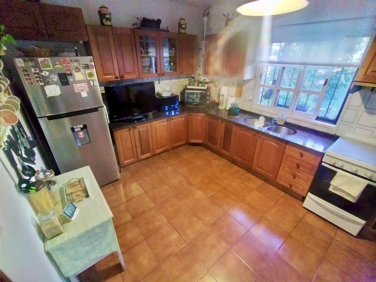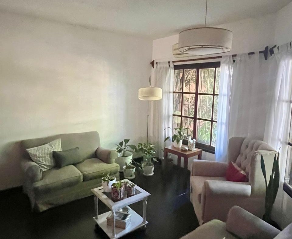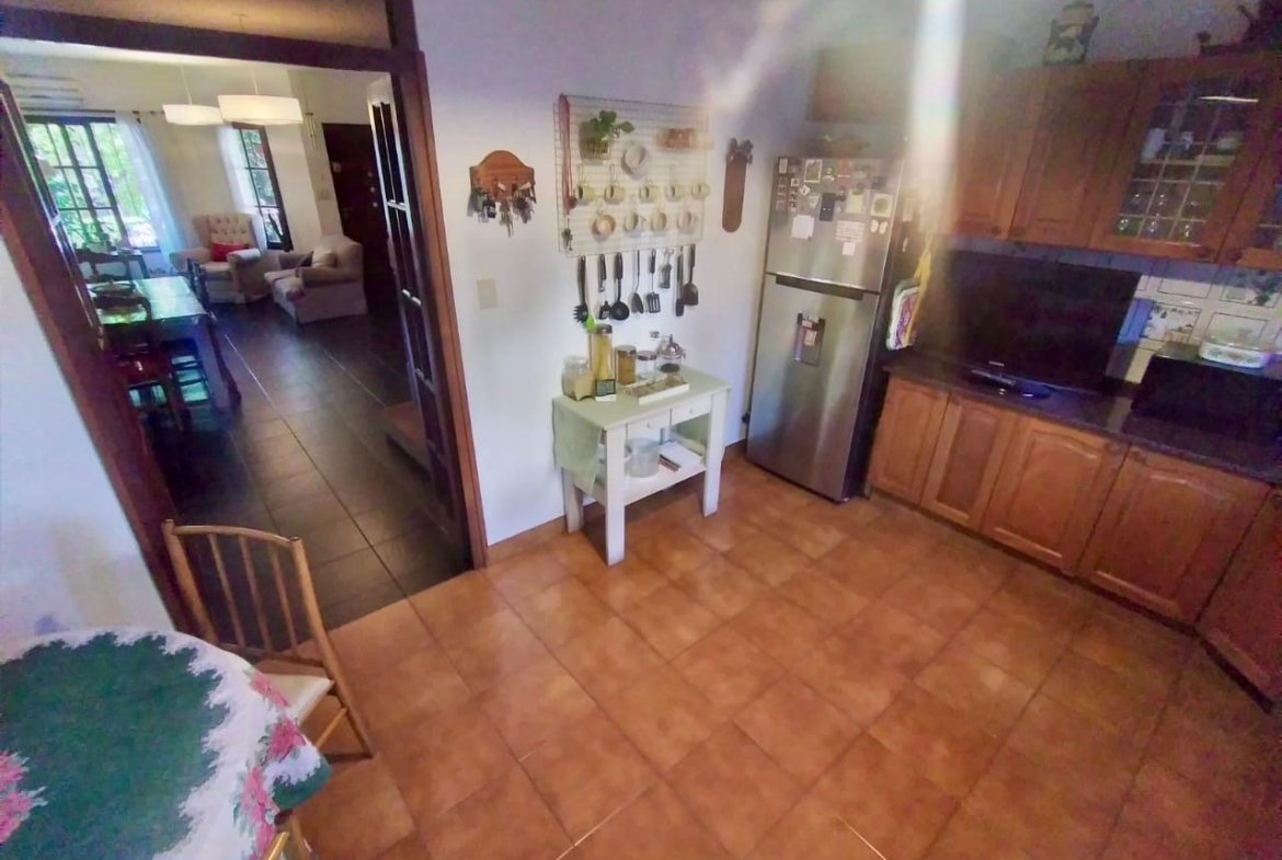 Living comedor con ventanal al frente, toil de recepción, amplia cocina comedor con muebles altos y bajos muy luminosa con salida a jardín.